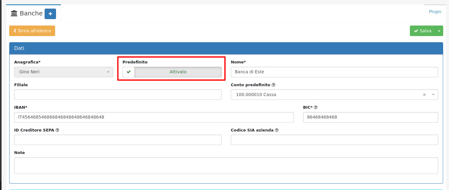 🏦Banca predefinita anagrafica