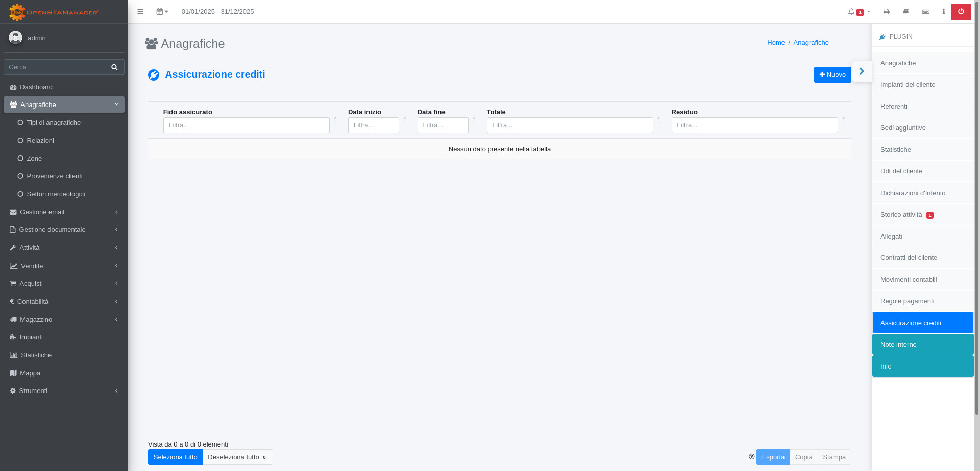 Guida al plugin Assicurazione crediti di OpenSTAManager