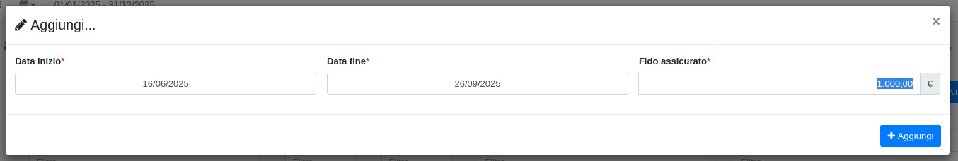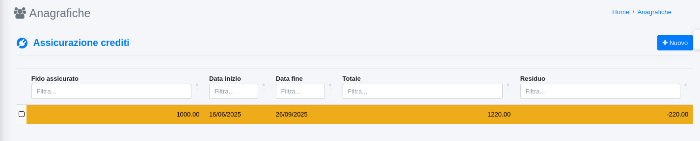 L'aggiunta di fatture aperte a credito del cliente va a diminuire questo valore, avvisando quando si andrebbe a superare questo limite imposto