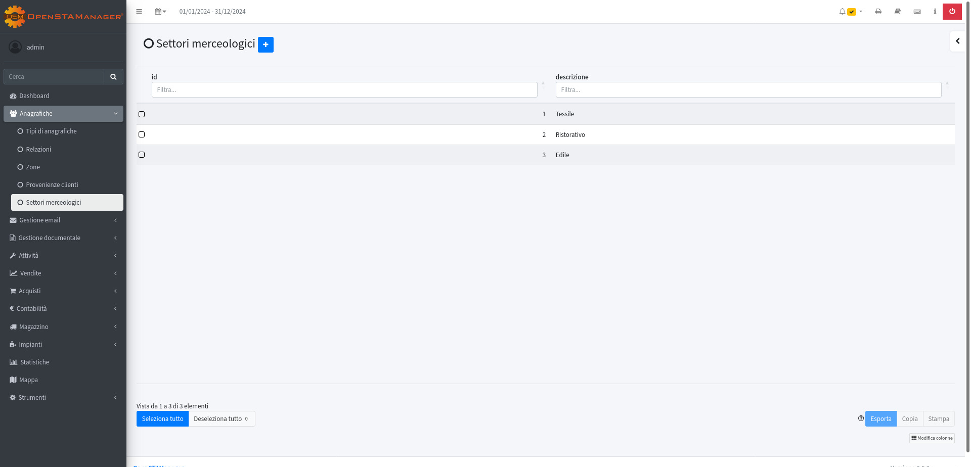 Come gestire i settori merceologici in OpenSTAManager