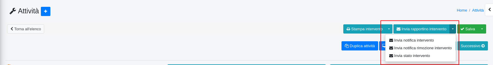 Invio del rapportino intervento