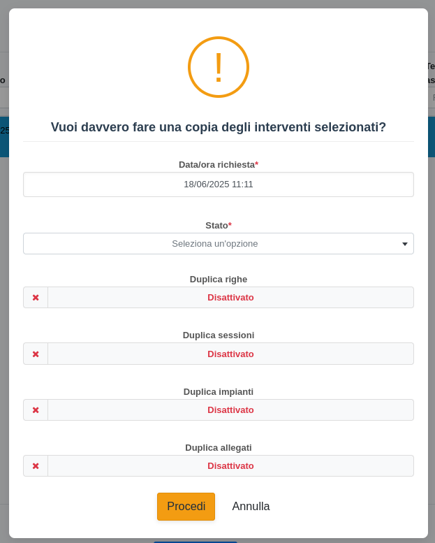 Il gestionale chiederà quindi la conferma a procedere alla duplicazione dei record, permettendo di scegliere: