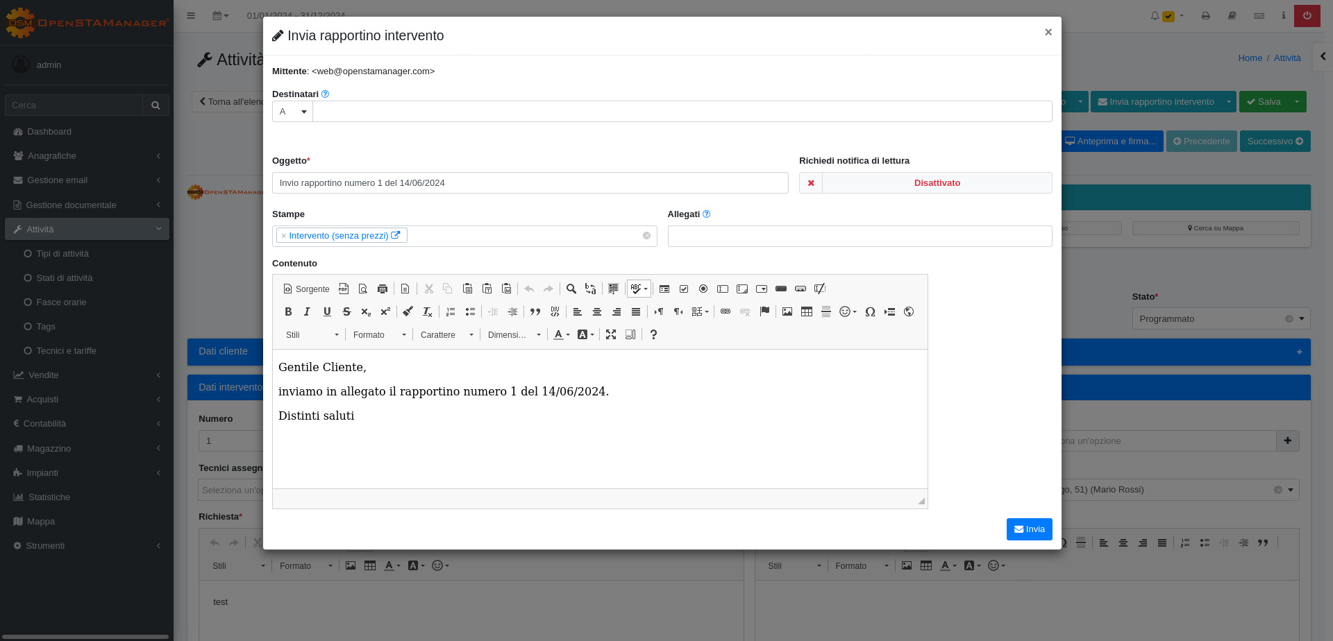 Guida alle azioni aggiuntive del modulo Attività di OpenSTAManager
