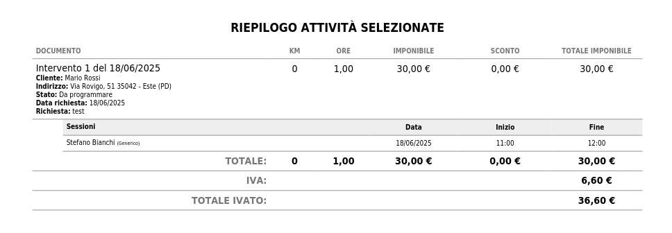 Si aprirà quindi ora la stampa del riepilogo degli interventi selezionati.