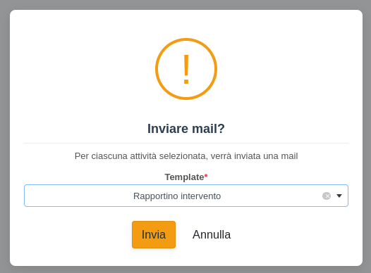Cliccando sul tipo di documento da inviare si verrà indirizzati al template email compilato con i dati dell'attività, dove sarà possibile inviare la mail cliccando su Invia.