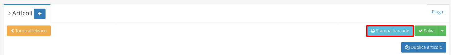 Dalla schermata di dettaglio di un articolo è possibile procedere alla stampa del suo barcode.