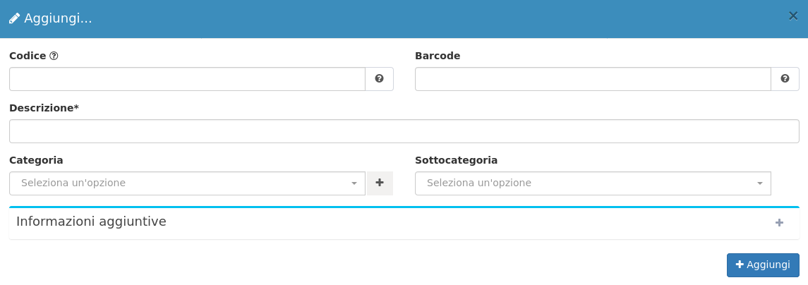 Il sistema di creazione di un nuovo elemento richiede la compilazione di alcune informazioni fondamentali: